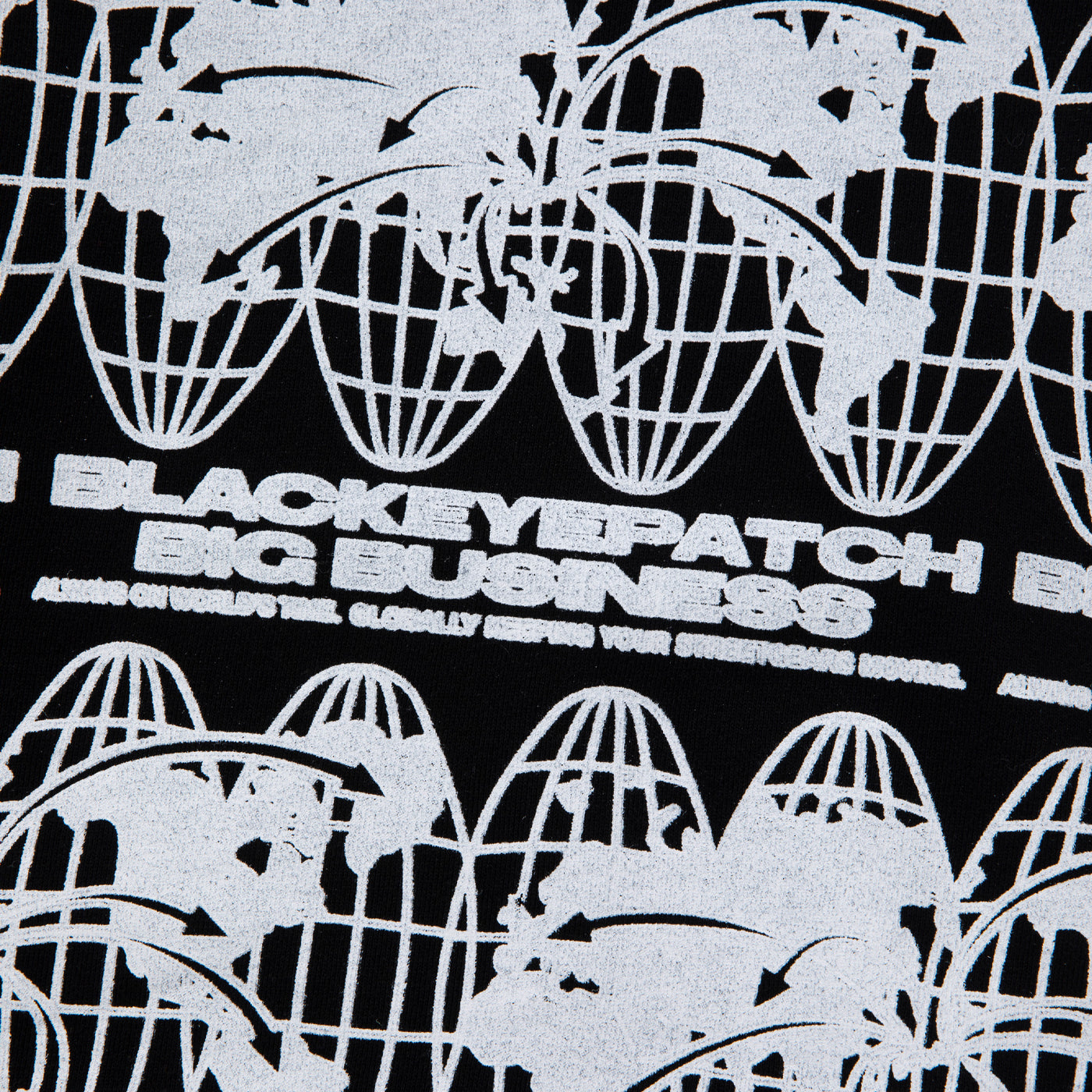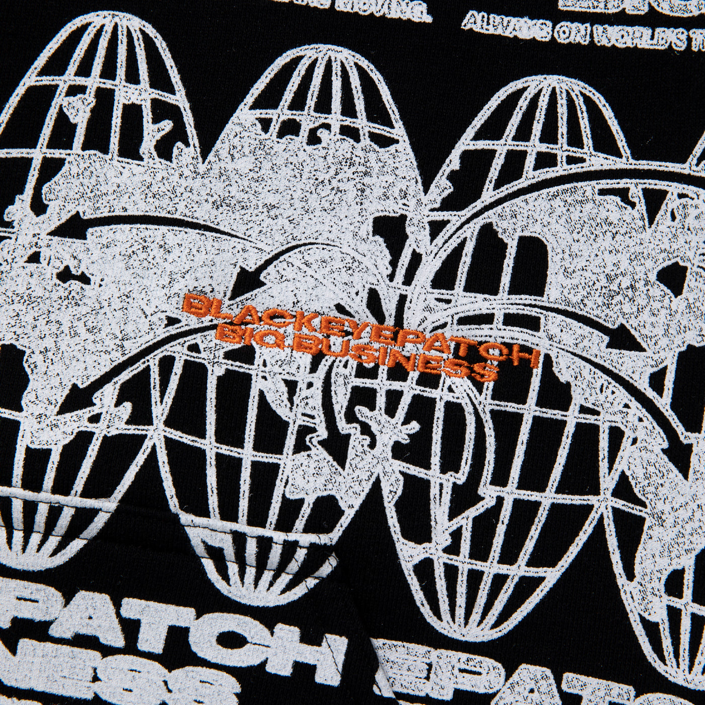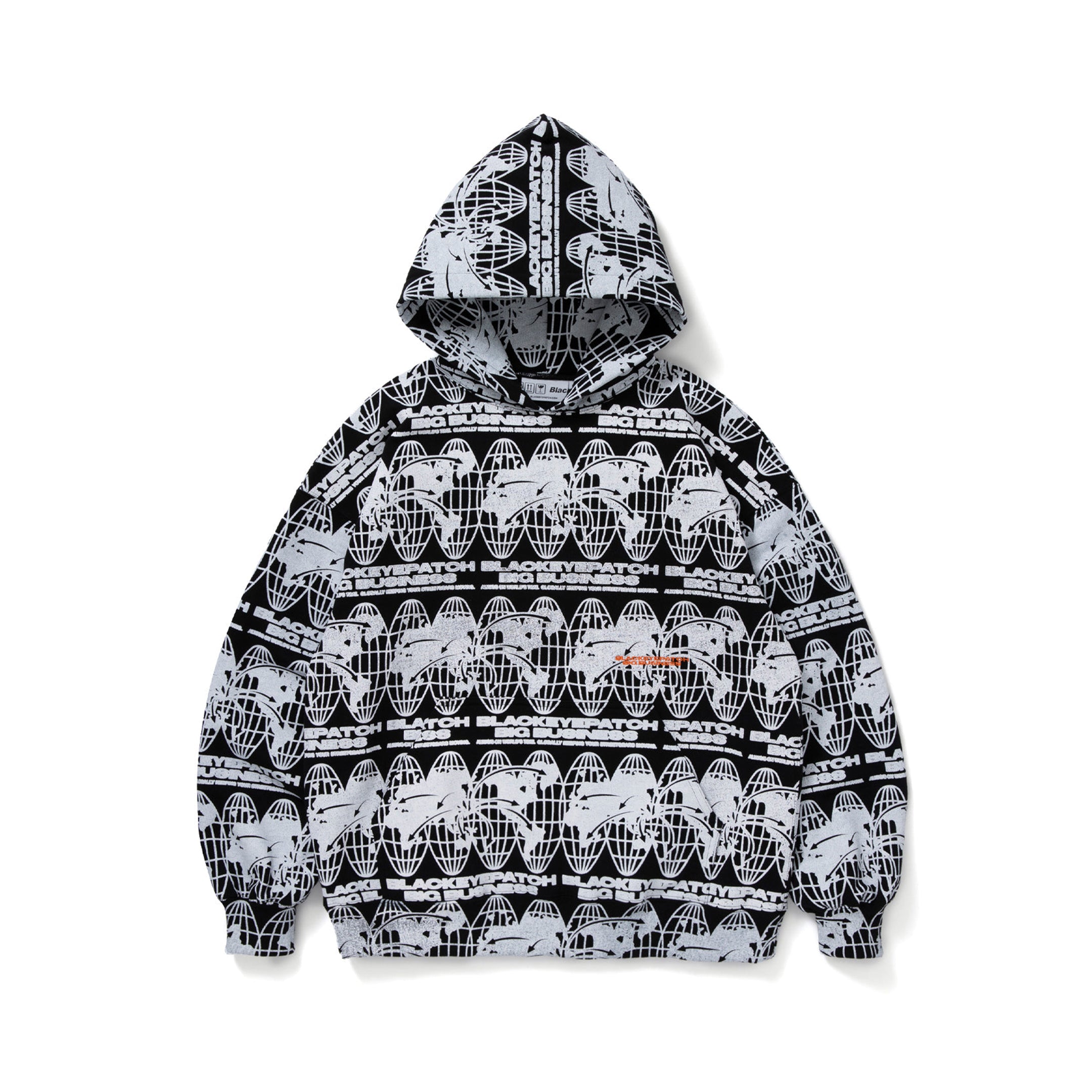 全面に世界を股にかけるイメージのデザインをプリントした総柄HOODIE。スウェットは12.5oz。プリントはシルクプリント。