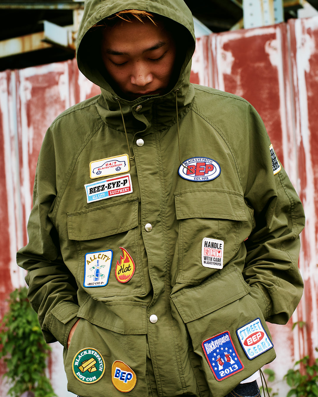 オリジナルデザインのワッペンを随所に施し、ヴィンテージウエアの雰囲気を演出したショート丈のクラシックスタイルなマウンテンパーカージャケット。