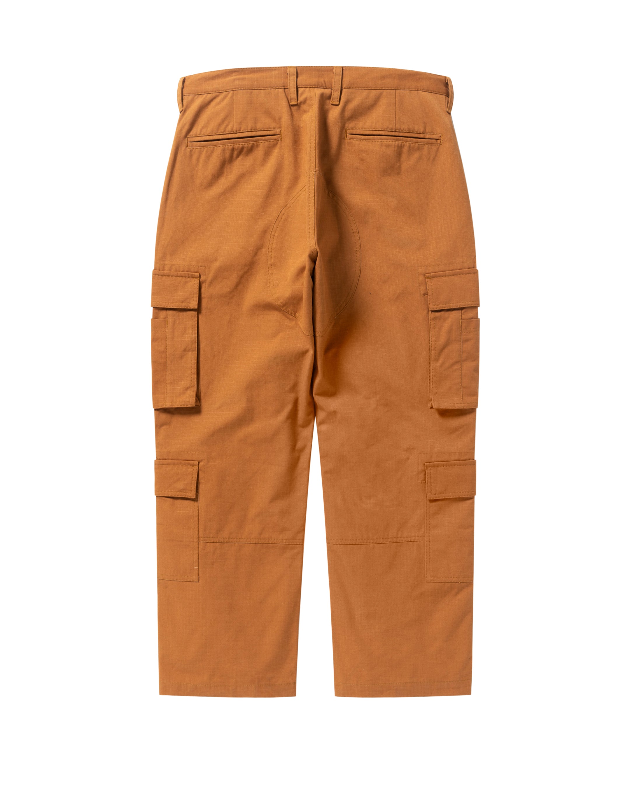 コットンリップストップ生地を使用した 8 ポケットのカーゴパンツ。