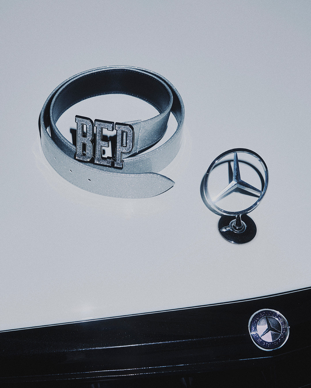 グリッター加工を施したベルトとバックルを使用したベルト。