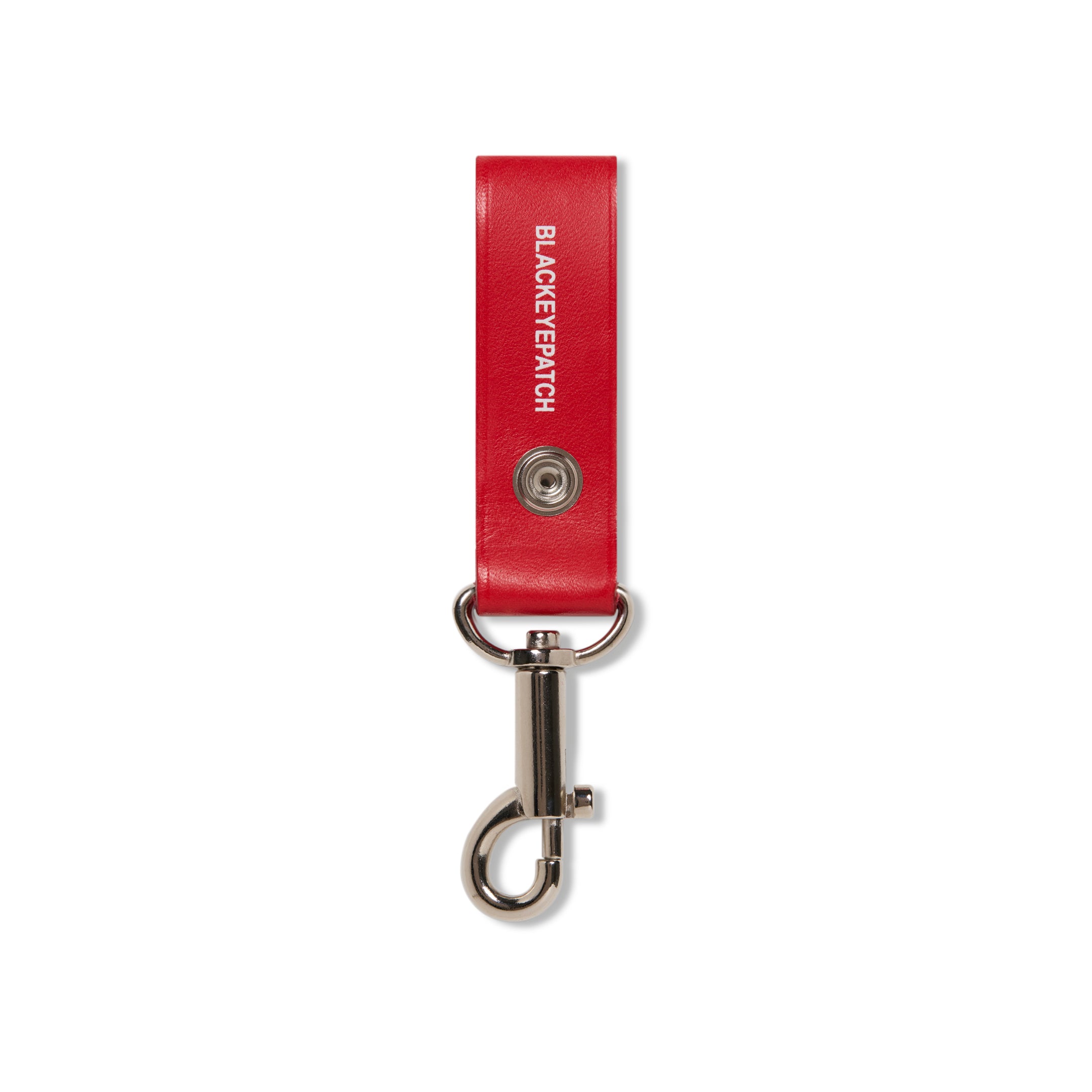"取扱注意" とブランド名を刻んだカウレザーのフープキーリング。
