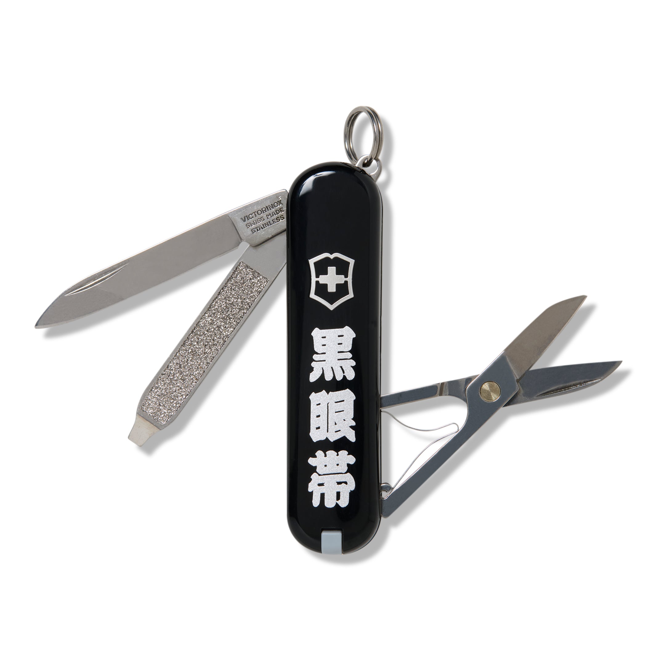 "黒眼帯" ロゴをプリントした Victorinox のマルチツール「クラシック SD」。