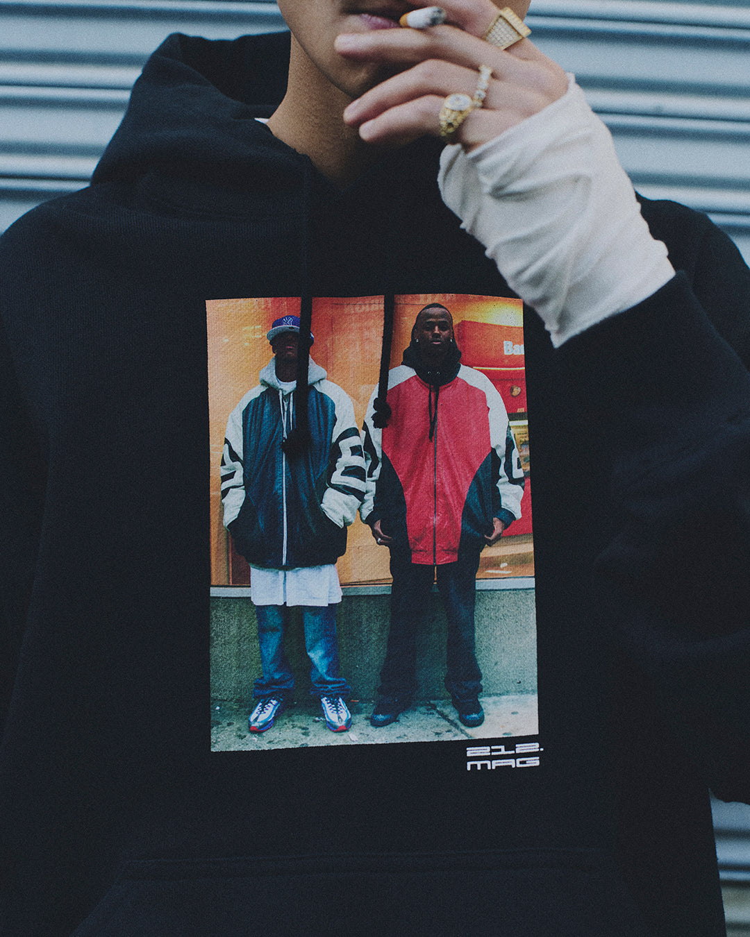 A 12.5oz pullover hoodie featuring a front print of photographs used in the photo magazine ‘212.MAG ISSUE’ by photographer Tetsuya Shimoyama, capturing the authentic streets of New York. The back features the BEP logo printed in a 212.MAG-style font.