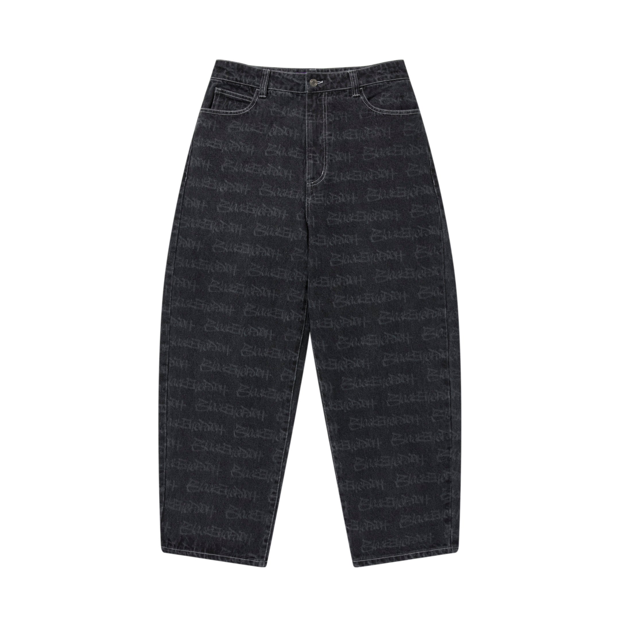 FASTHAND SCRIPT PATTERNED EXTRA BAGGY JEANS BLACK