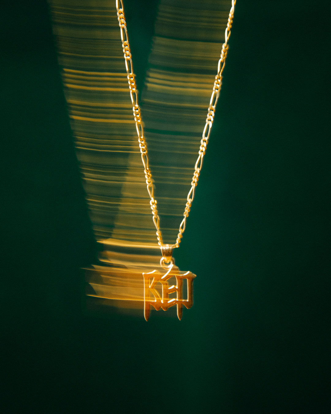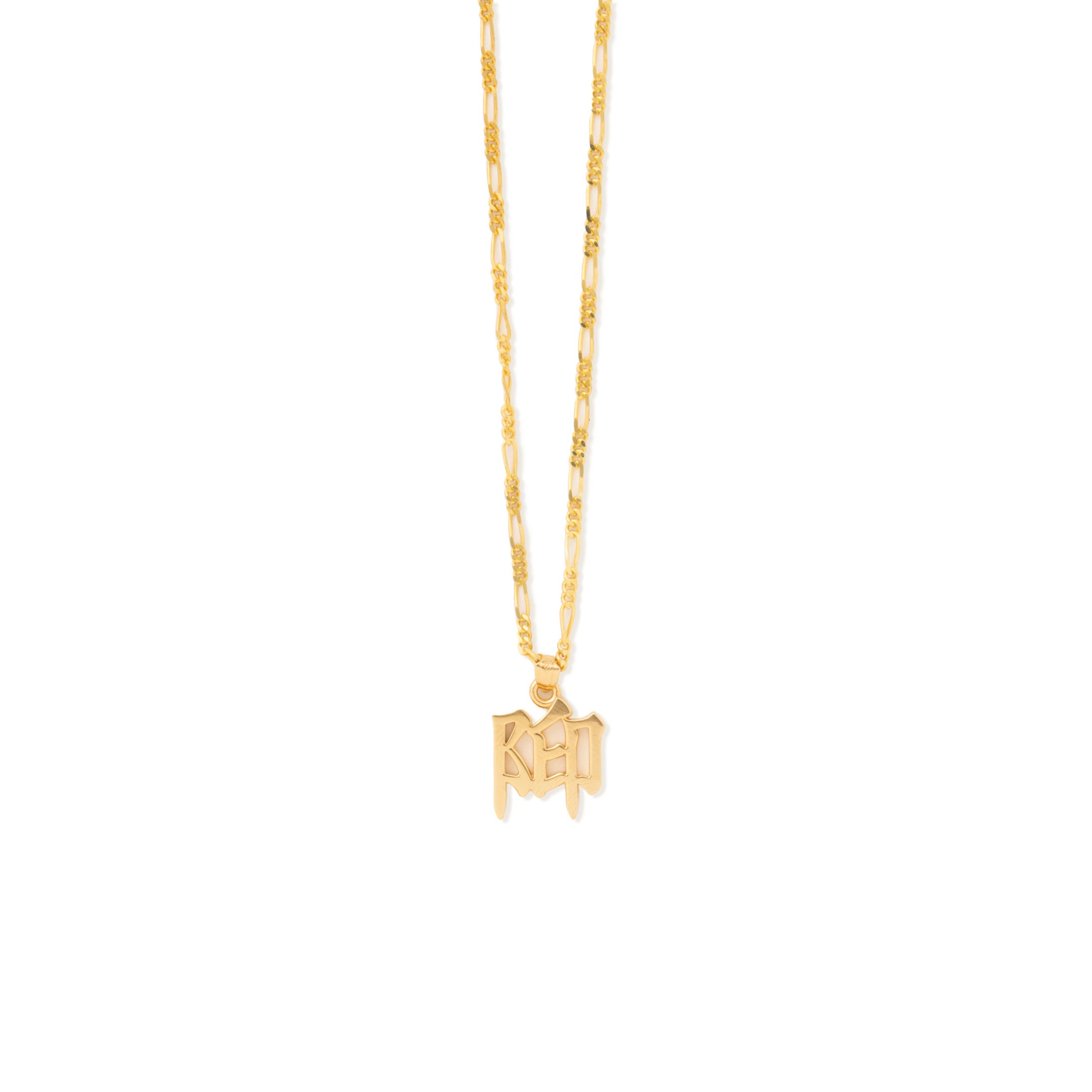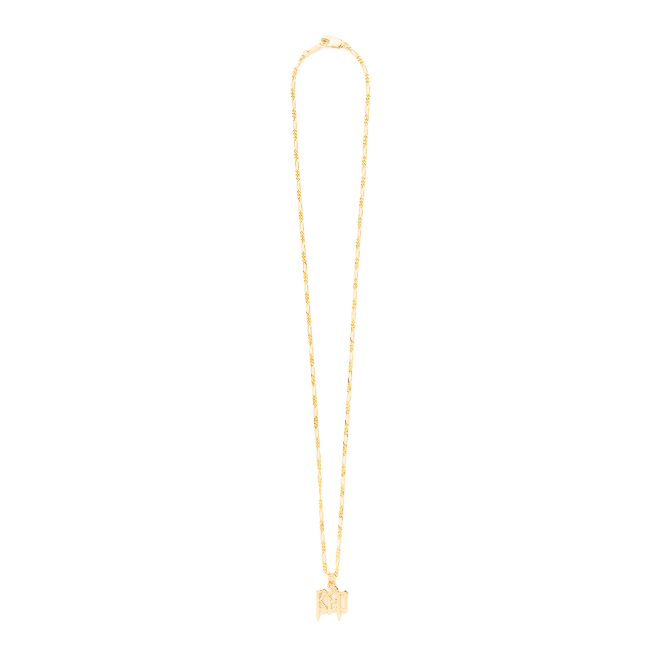 Gold-plated necklace featuring pendant top featuring the "B STAMP" logo with the letters BEP in Japanese writing style. Figaro chain is used. Silver 925 base.