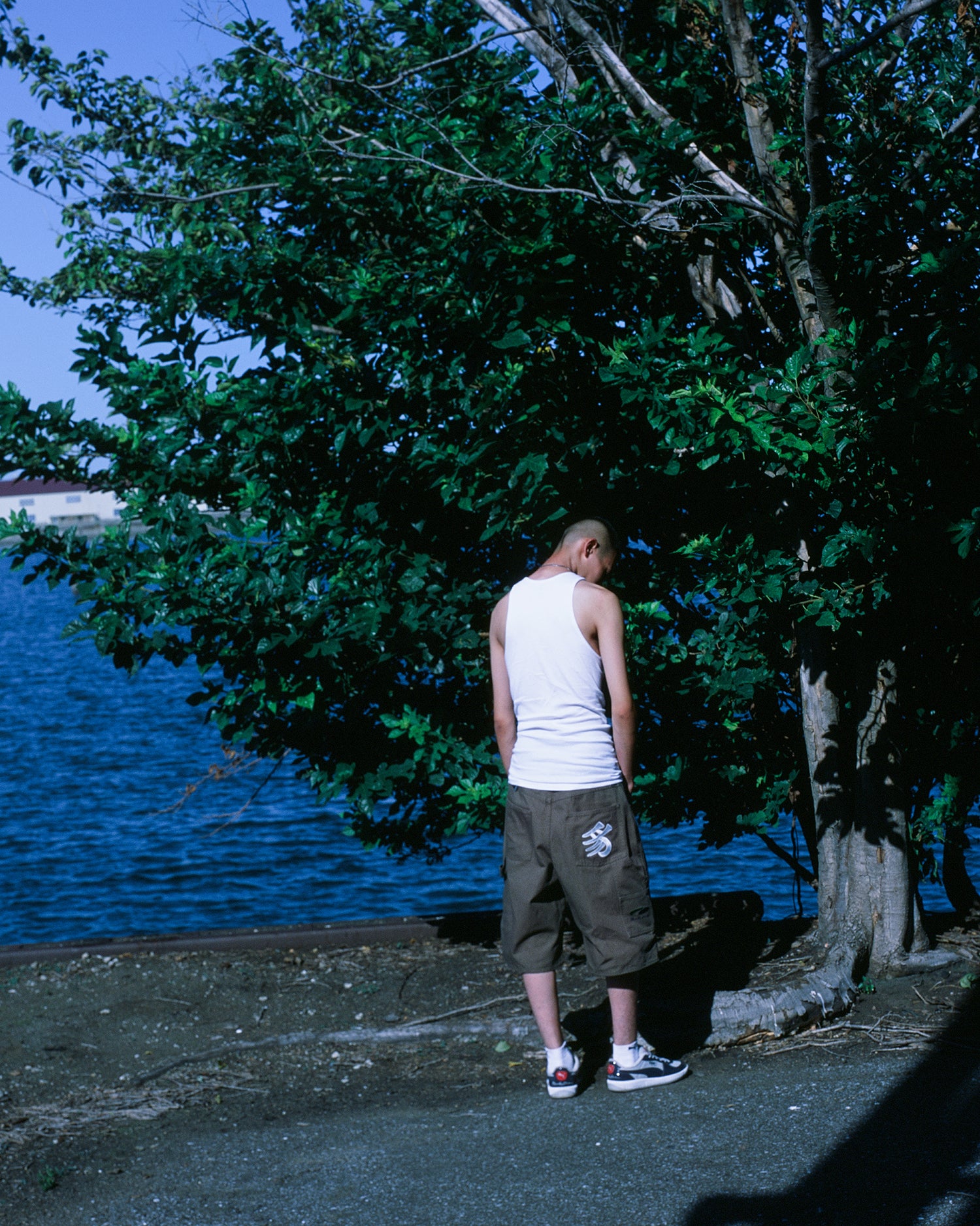 フロント左ポケット下に PUMA ロゴ刺繍、バックポケットには "豸" の漢字ロゴと PUMA Skateboarding ロゴが刺繍されたボリューム感のあるシルエットのペインターショーツ。