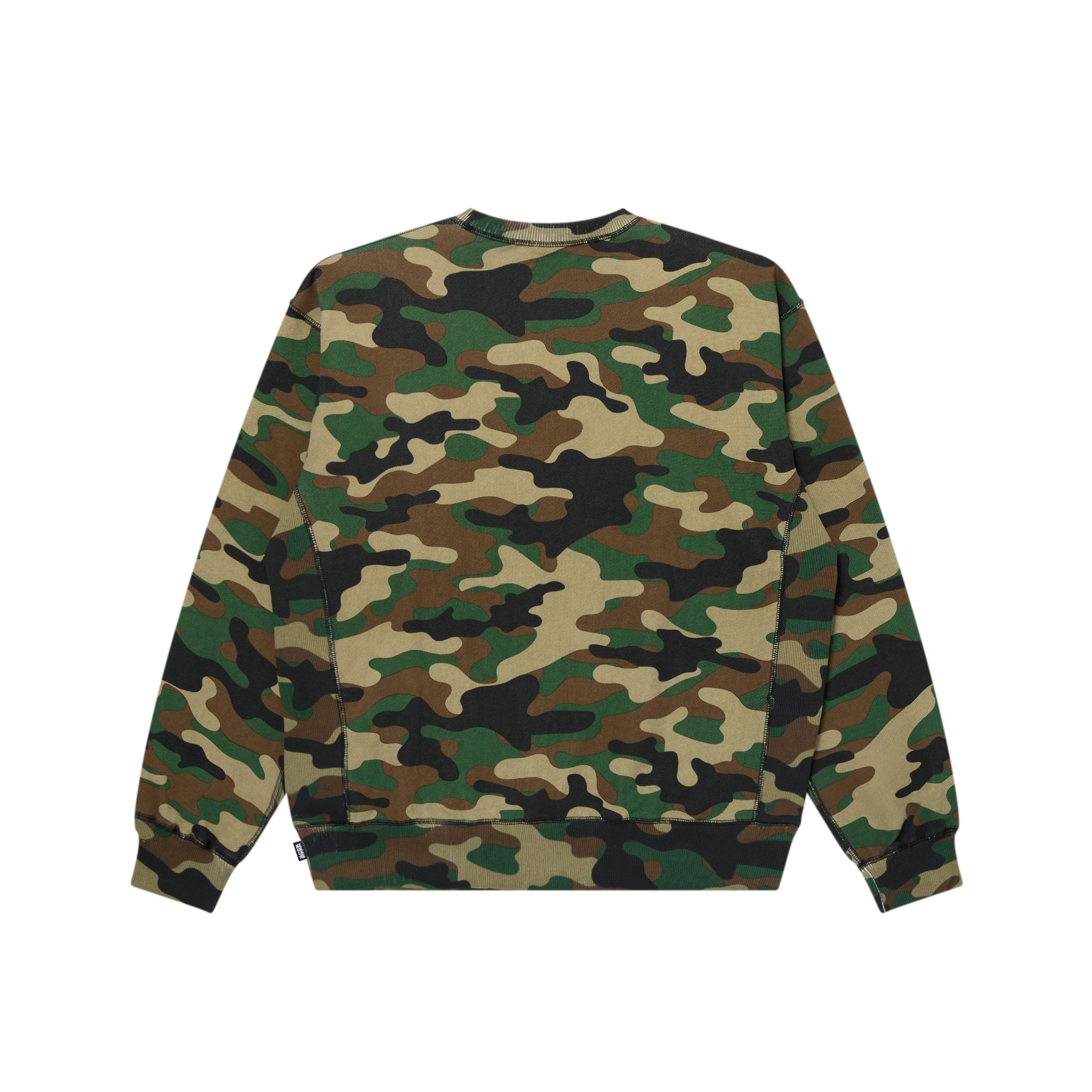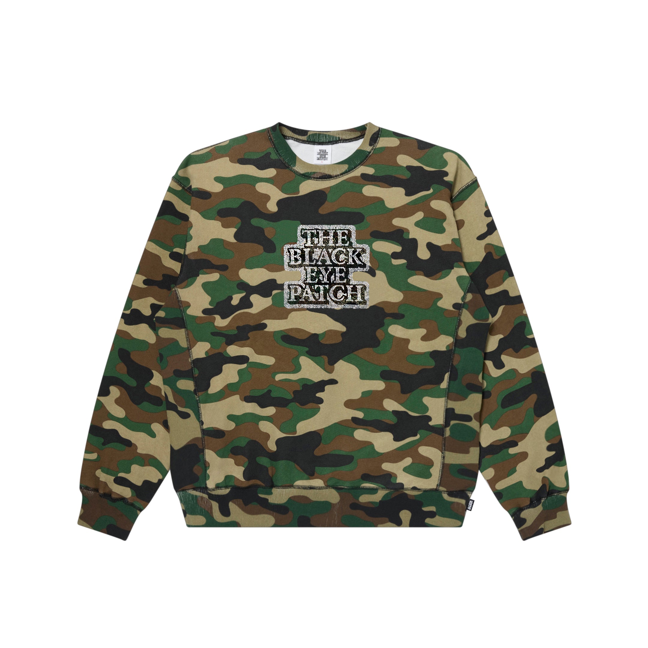 RHINESTONED OG LABEL CREW SWEAT WOODLAND CAMO
