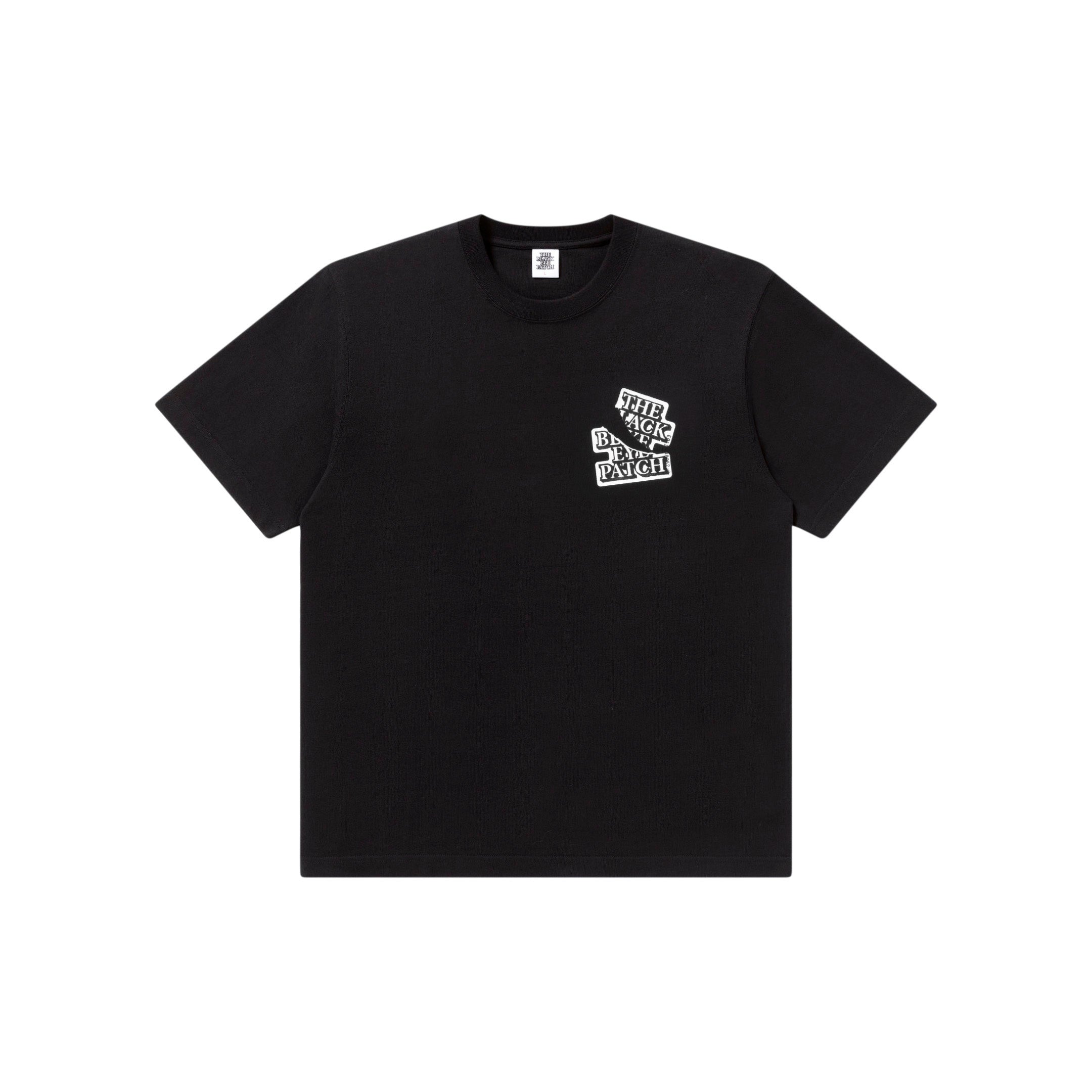 "OG LABEL" ロゴを真っ二つに破いた様をプリントしたロゴ T シャツ。