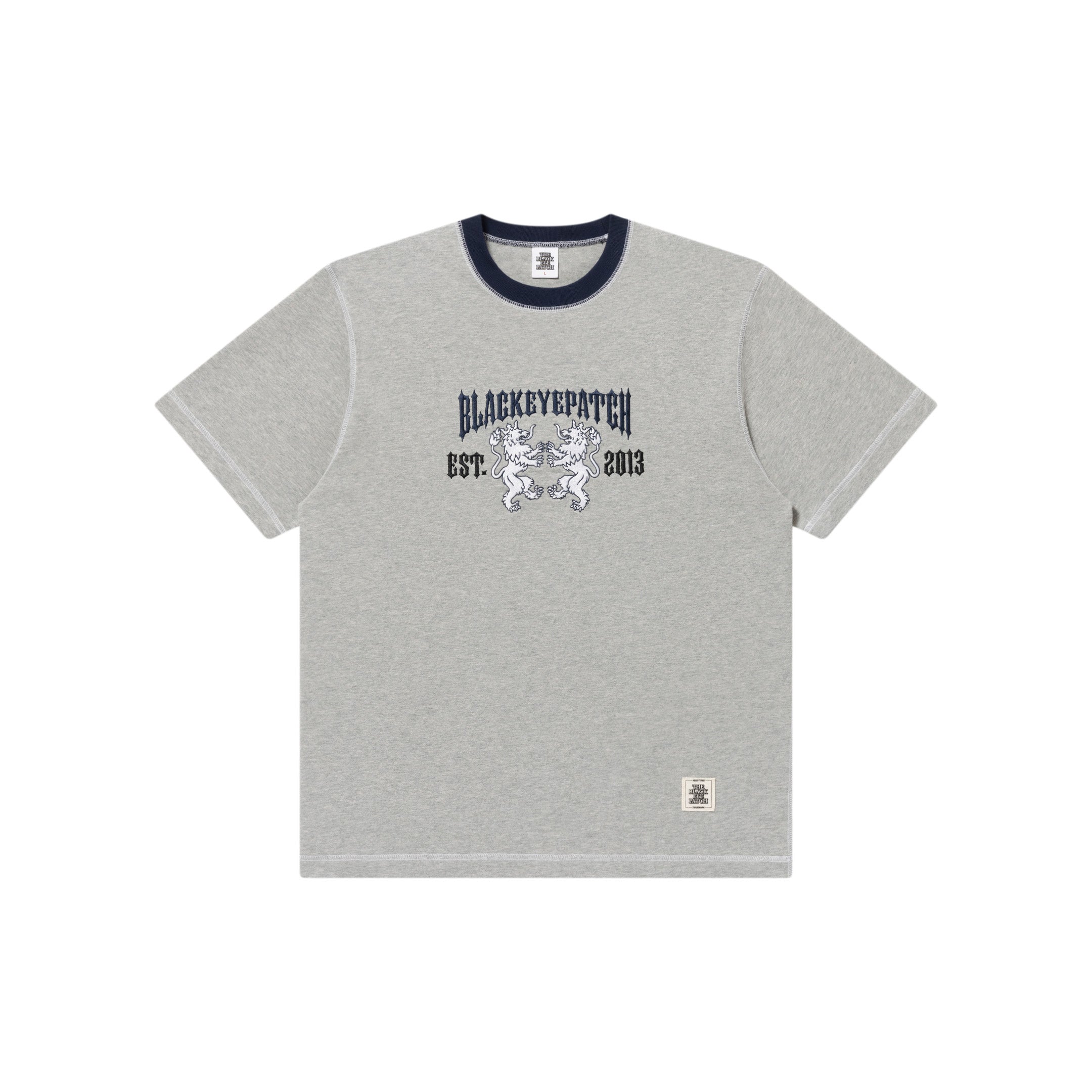 HERALDIC COLLEGE STITCH TONED TEE HEATHER GRAY