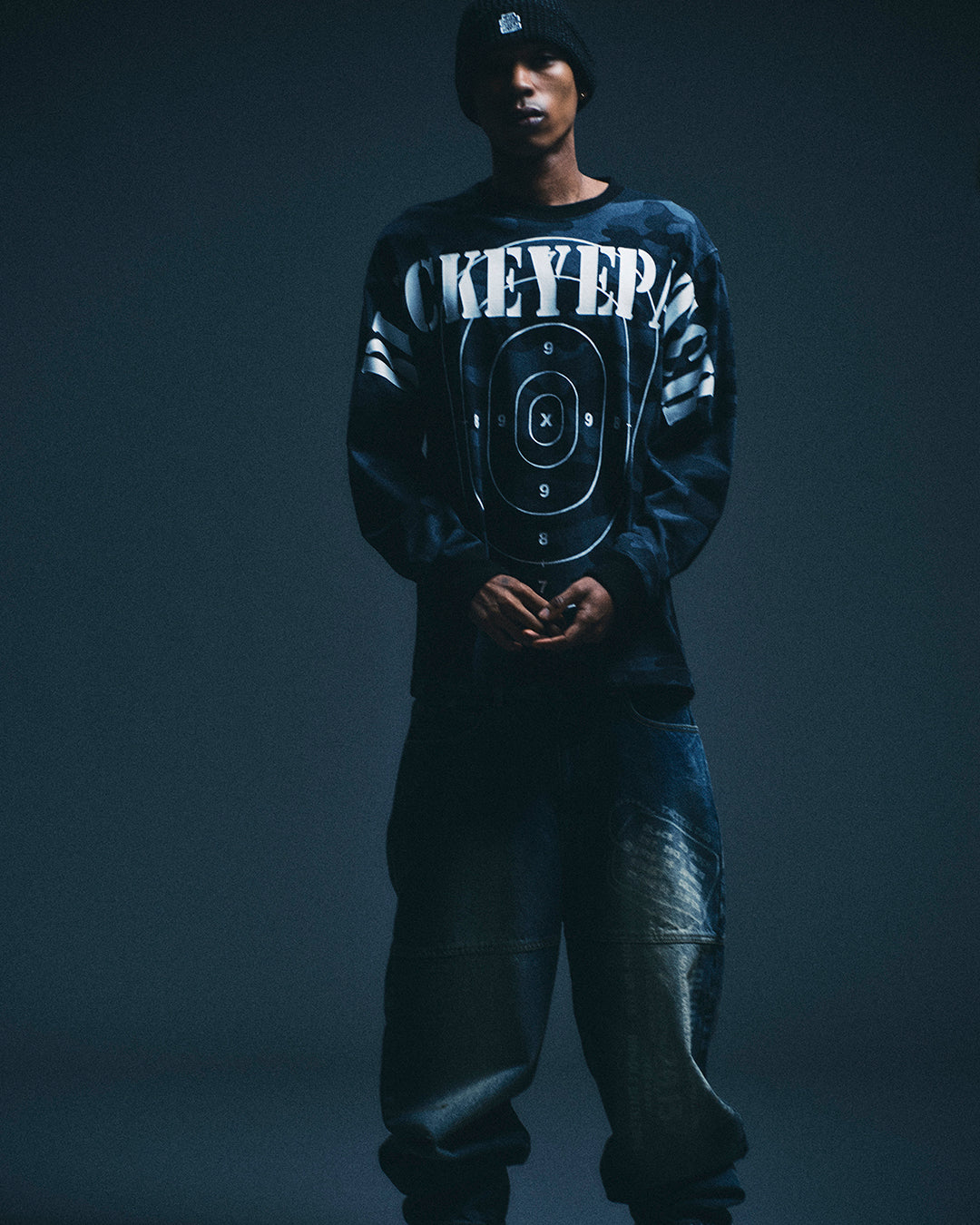 背中のグラフィックは US の射撃用品ブランドのロゴをサンプリング。