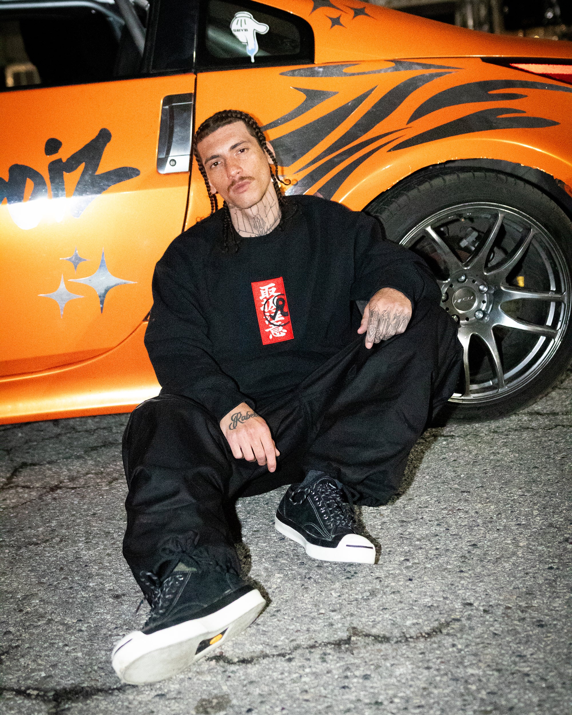 A collaboration with "Richardson," launched by Andrew Richardson, founder of the New York art and culture magazine "Richardson Magazine," which debuted in 1998. This 12.5oz crew sweatshirt features embroidery combining the "Handle with Care" label graphic and Richardson's "R" logo.