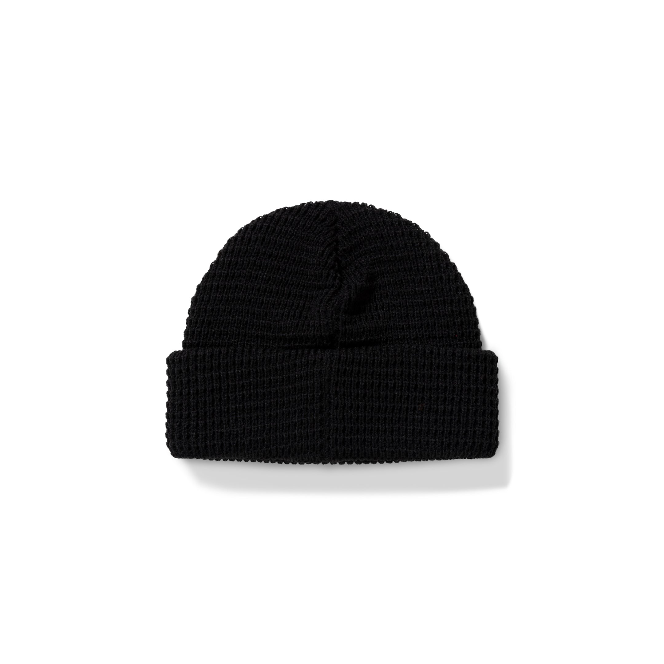 A chunky waffle-knit beanie featuring an "OG LABEL" logo patch.
