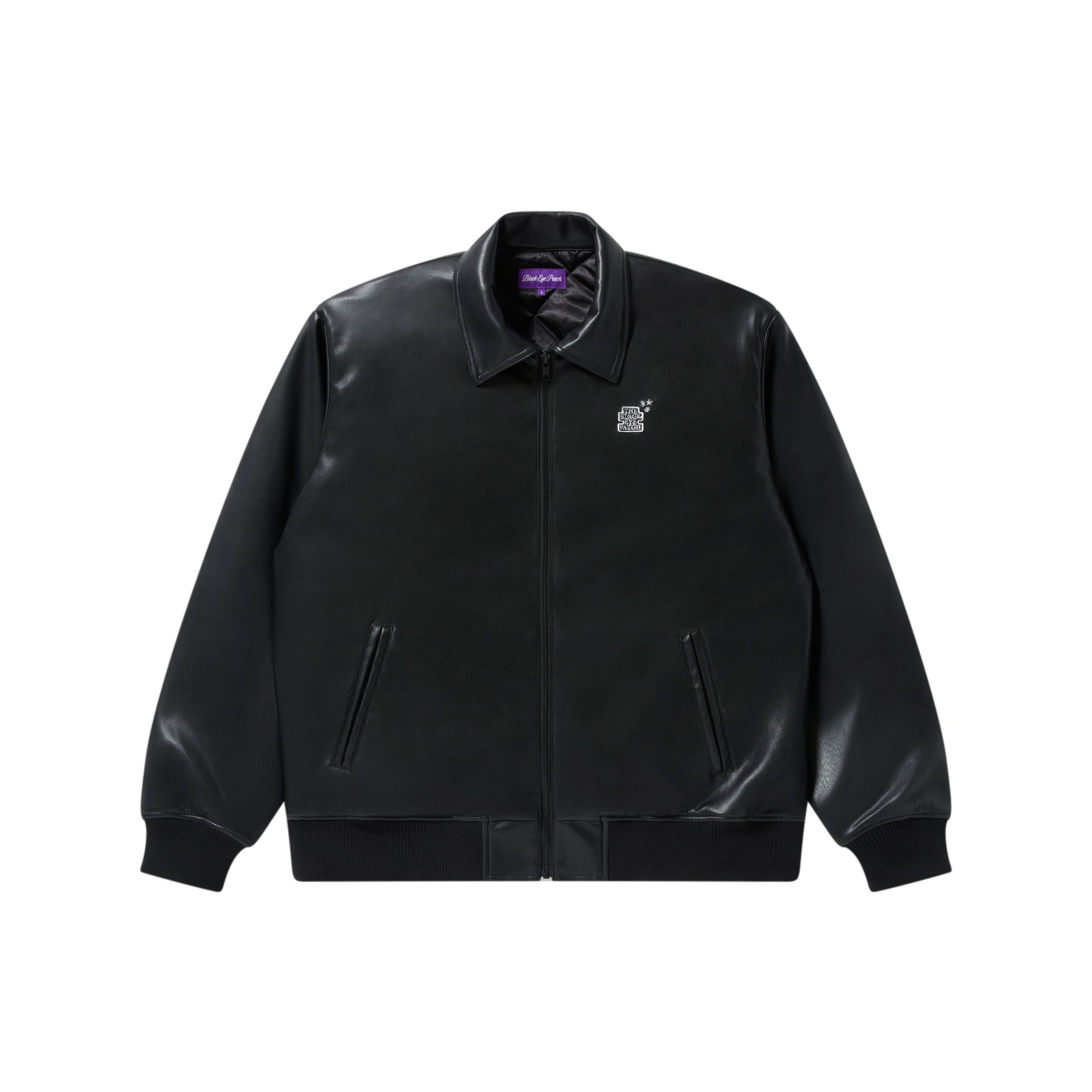 フロントには "SMALL OG LABEL" ロゴのワッペンと刺繍、背面に "OG BOY" を同色のエナメル生地で表現した PU レザー生地を使用のジャケット。