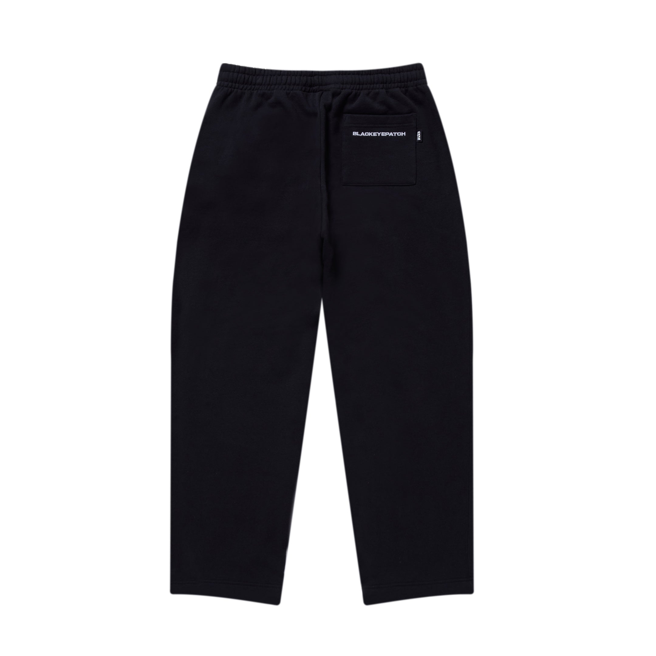 These 17oz sweatpants feature a "SMALL OG LABEL" logo patch on the left thigh and a "Handle with Care" care label attached next to the pocket. They are available as a set with a matching hoodie.