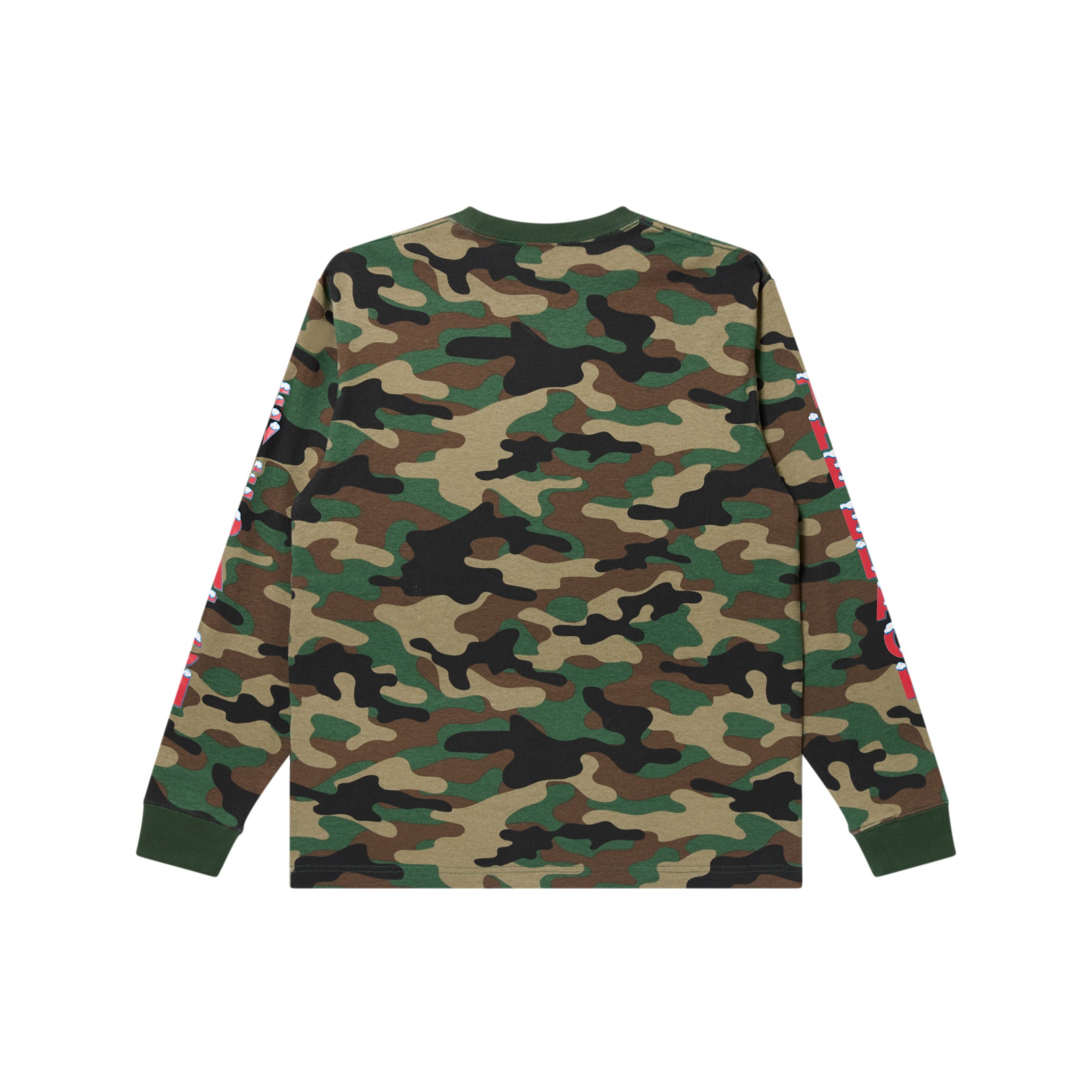 US のコンビニなどの店頭に置かれる氷販売用什器に書かれたフォントをサンプリングし、左胸と両袖にロゴを配したロングスリーブ T シャツ。