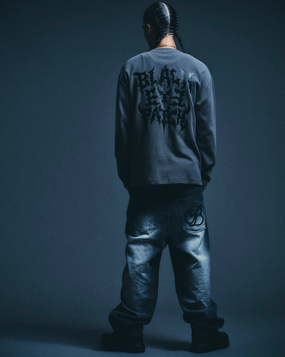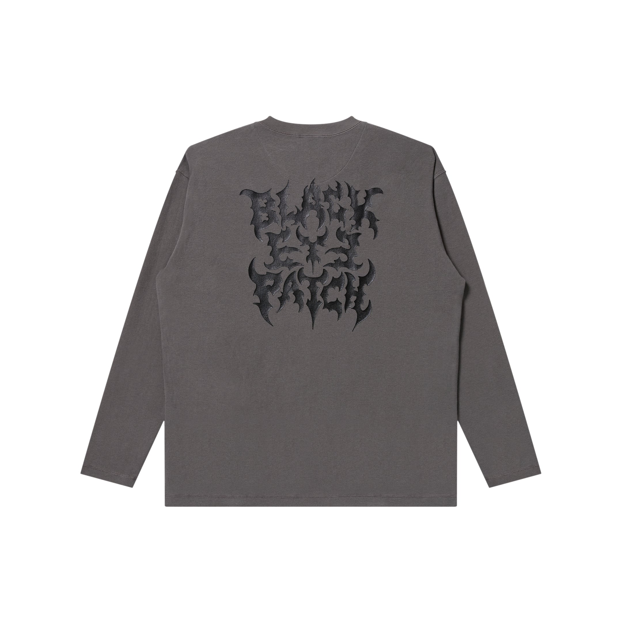 METAL BAND LOGO をプリントしたサーマル生地のヘンリーネックロングスリーブ T シャツ。