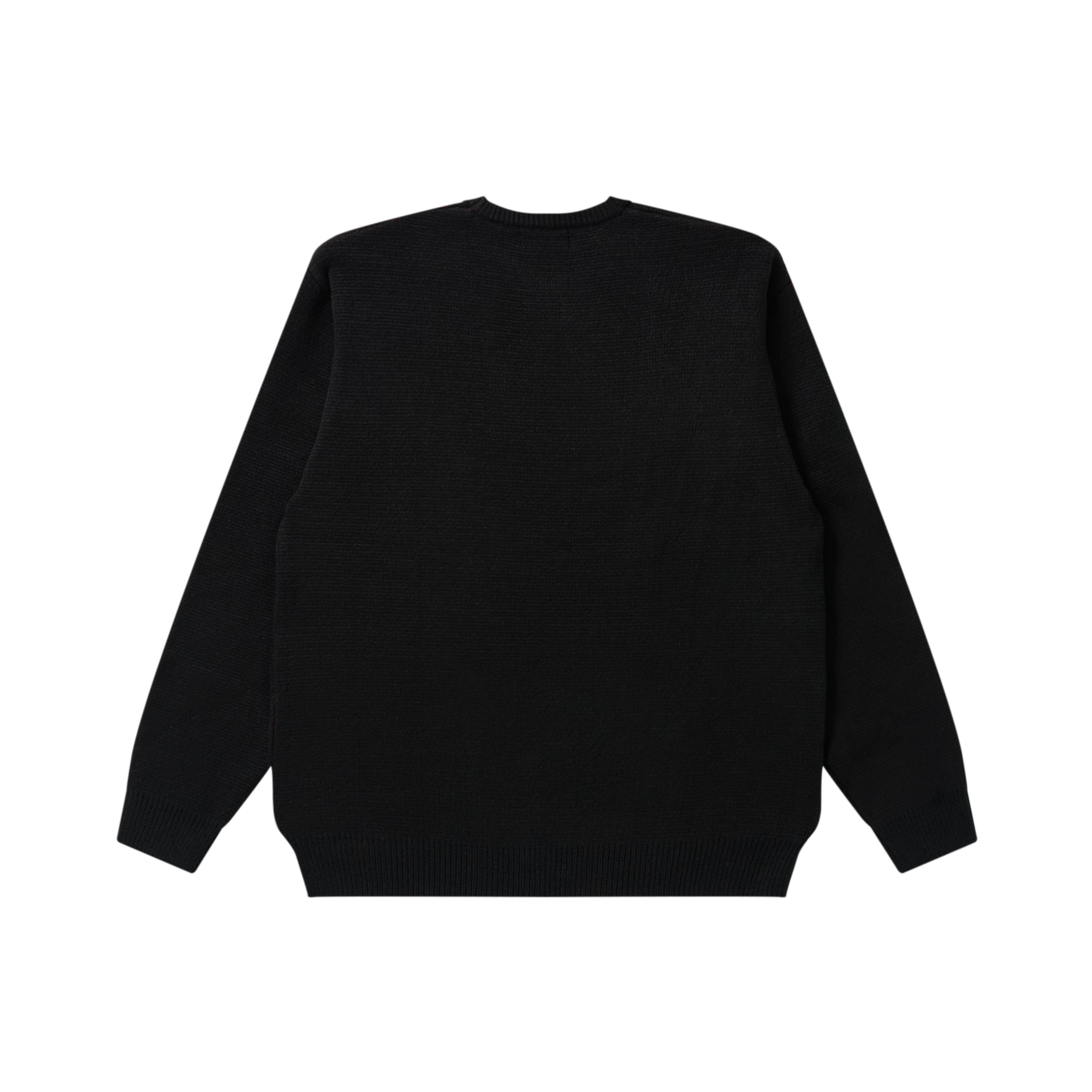 "STOP SNITCHING" のグラフィックが織り込まれたコットンのクルーネックニットセーター。