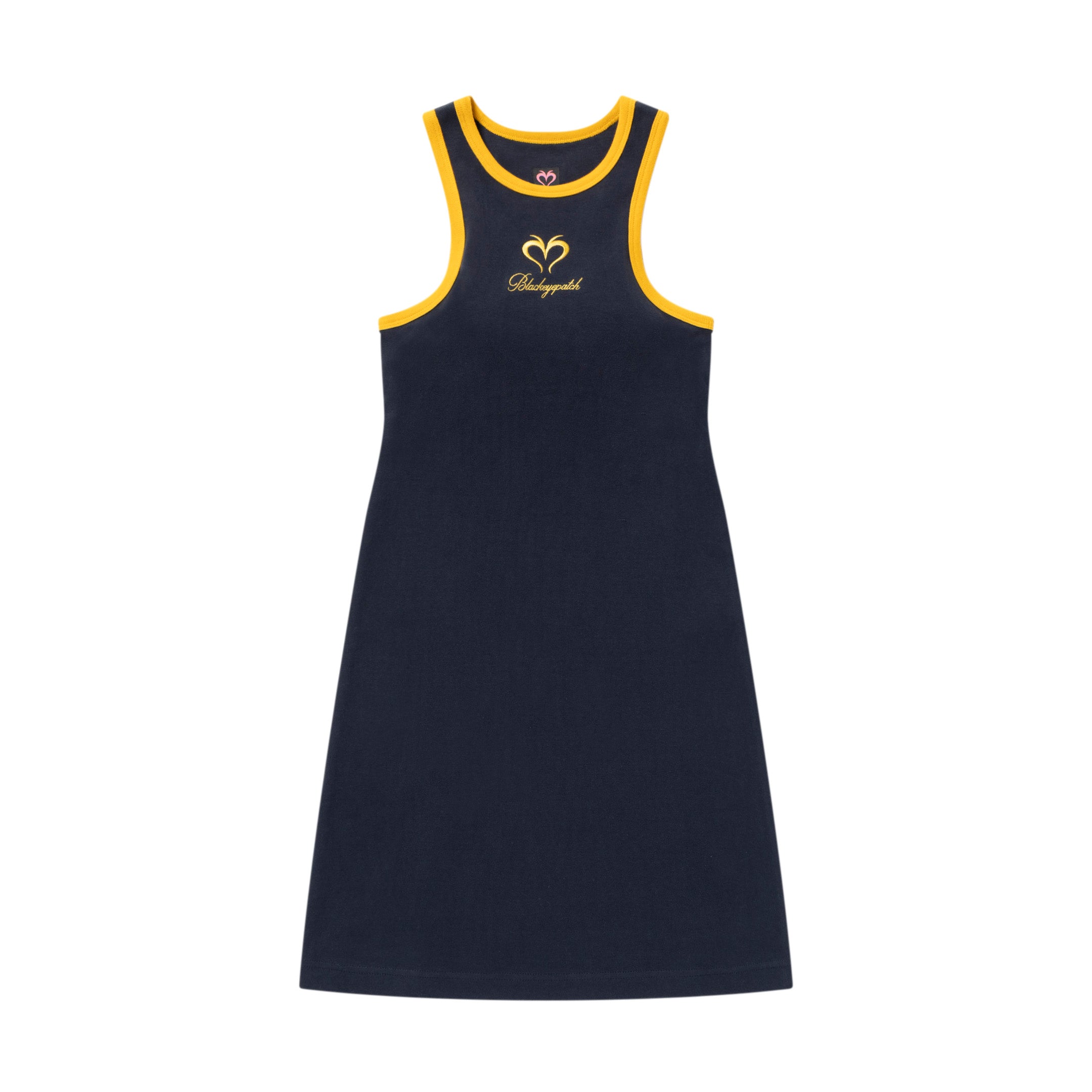 American sleeve dress featuring embroidered collaboration original logo with early signature heart motif.