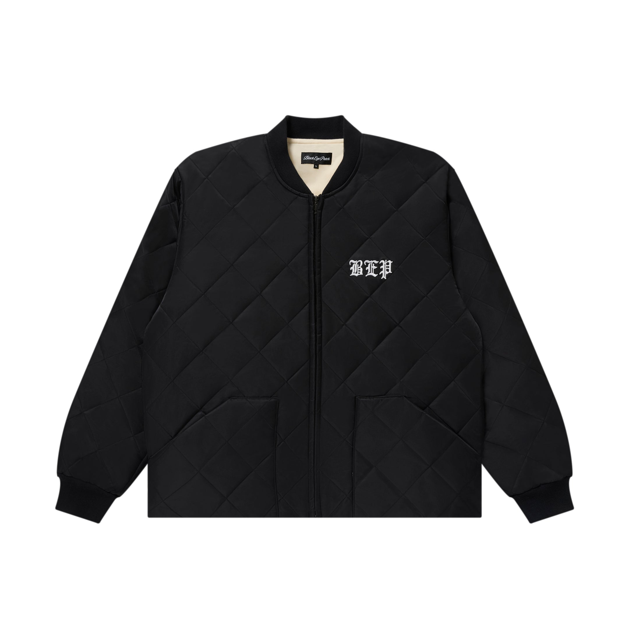 Quilted jacket featuring updated sizing with diamond quilting and O.E. logo embroidery on the front and back.