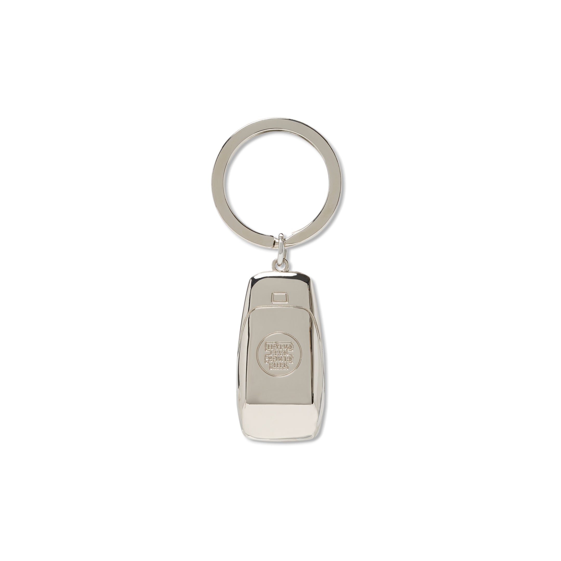 A metal key chain modeled after a certain automaker's key.