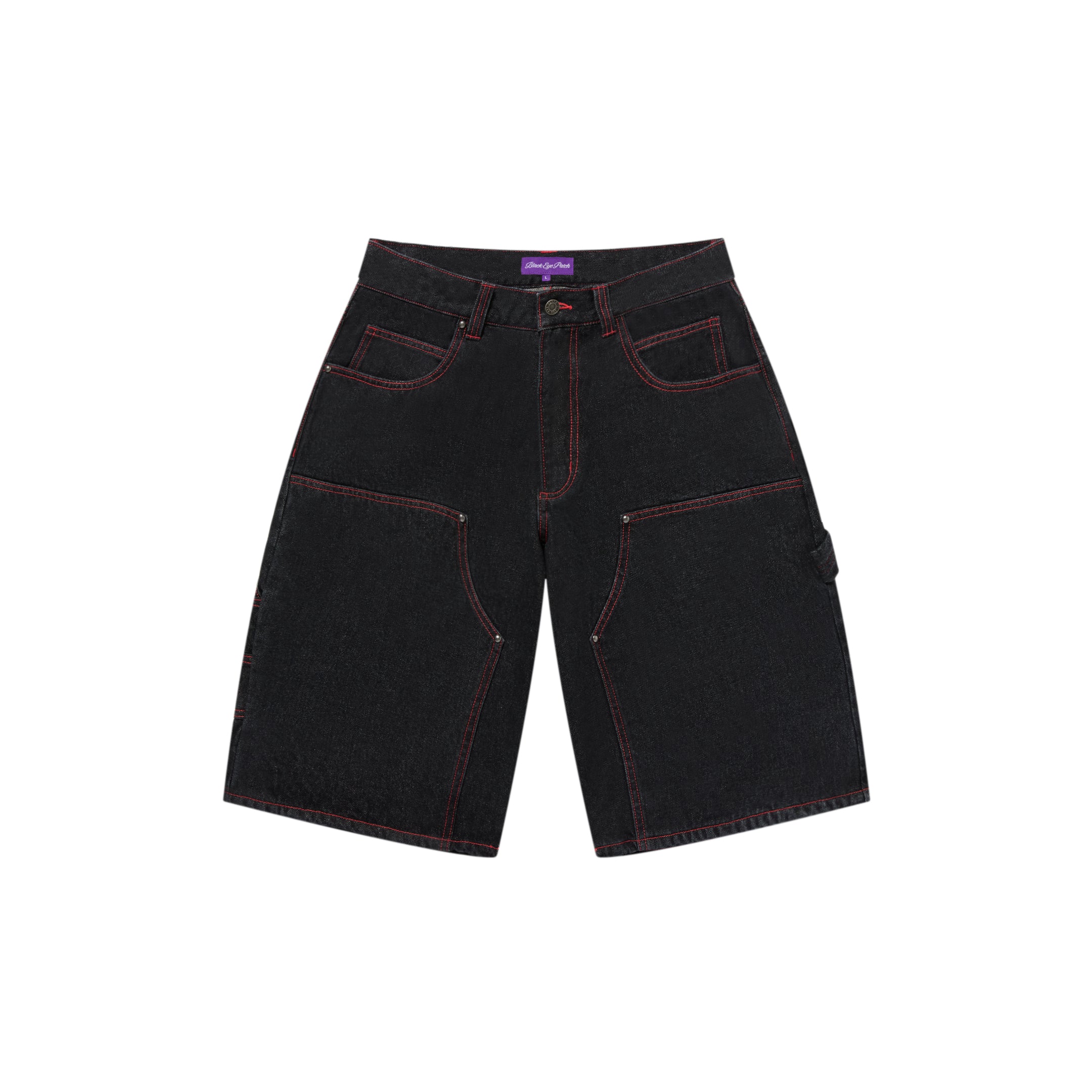 STENCIL LOGO DOUBLE KNEE DENIM SHORTS BLACK