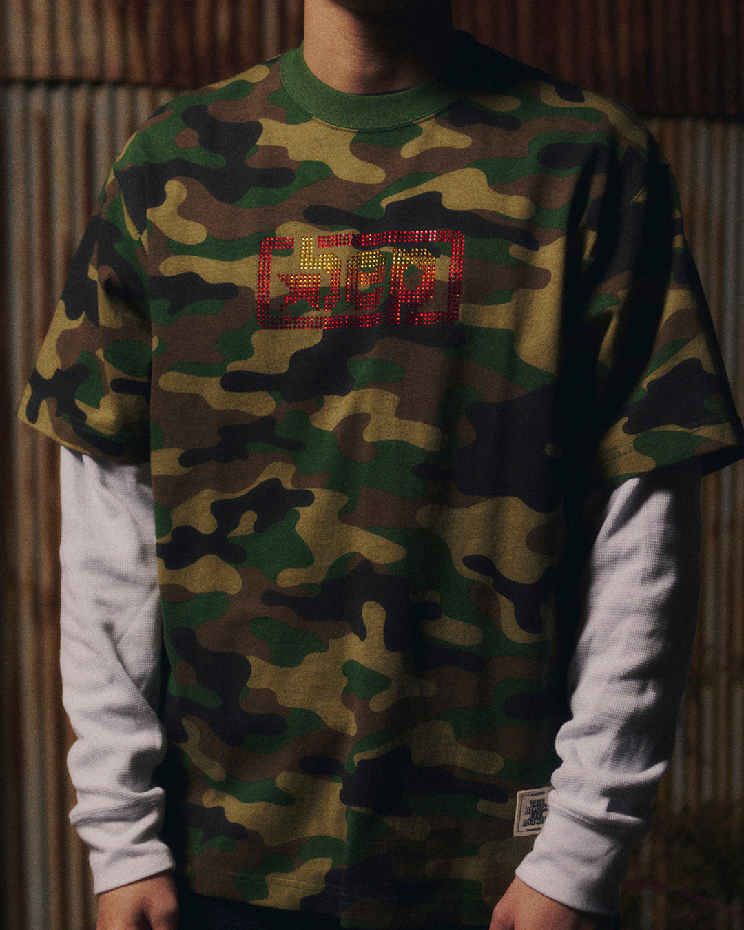 90 年代に一世を風靡した NY 発のヒップホップカルチャーブランドからサンプリングしたロゴをラインストーンで表現した T シャツ。