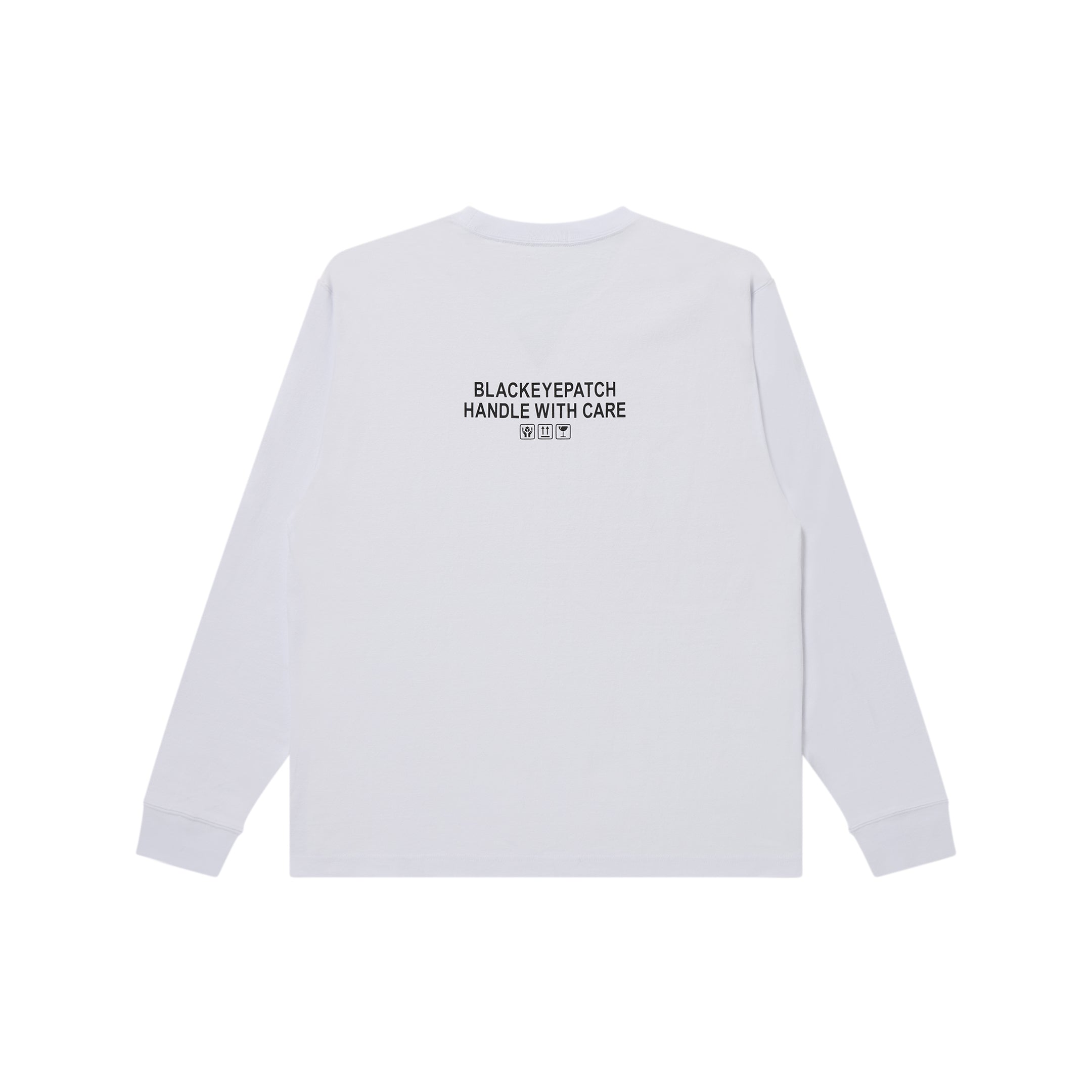 This long-sleeve T-shirt from the LABEL series embodies the brand’s identity. It features a print combining the "Handle with Care" graphic—a BlackEyePatch staple—with the LABEL logo.